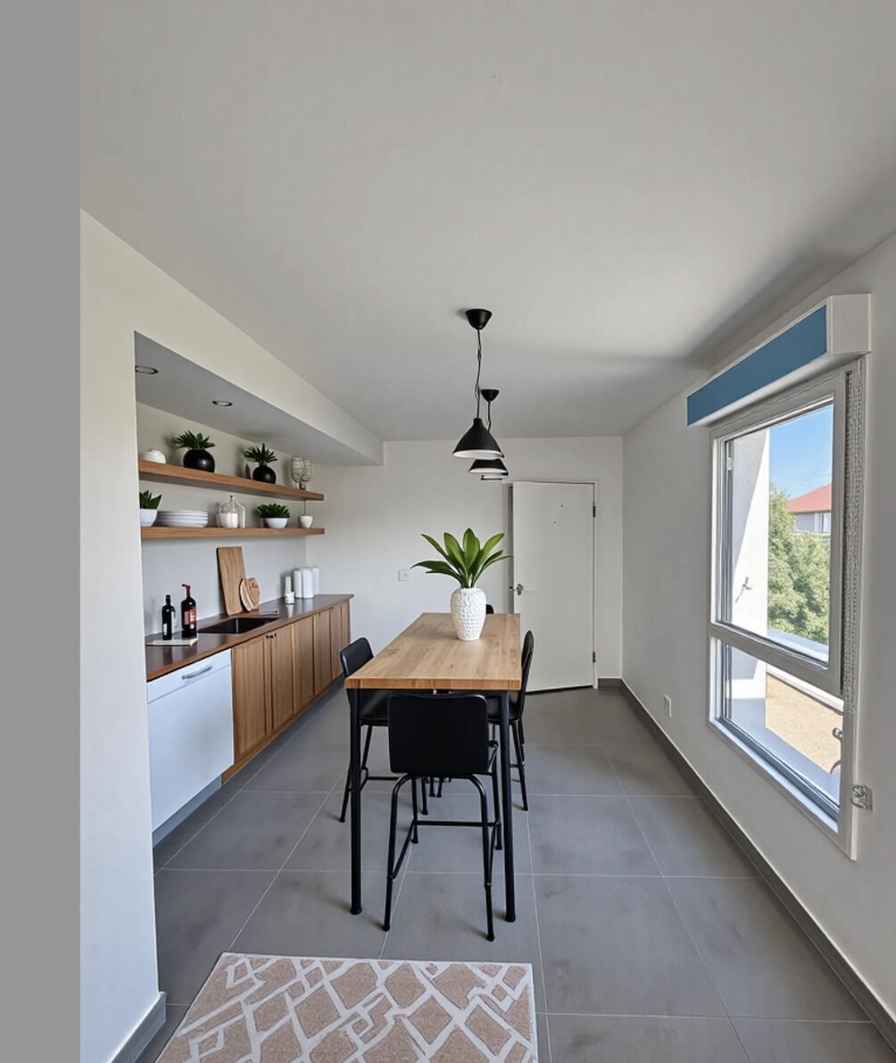 Der grosszügige und lichtdurchflutete Wohn- und Essbereich mit 50,29 m² überzeugt durch eine offene Küche in einer Nische mit praktischem Reduit sowie ein weitläufiges Wohnzimmer mit viel Tageslicht dank vier Fensteröffnungen.