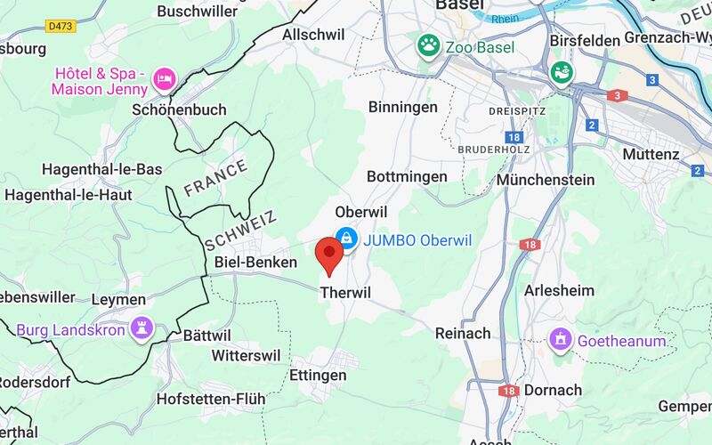 Die Liegenschaft ist verkehrstechnisch gut erschlossen. Mit der Tramlinie 10 erreichen Sie die Stadt Basel bequem in rund 25 Minuten. Der Autobahnanschluss A18 ist ebenfalls schnell erreichbar und bietet ideale Verbindungen Richtung Basel, Delémont oder Zürich.