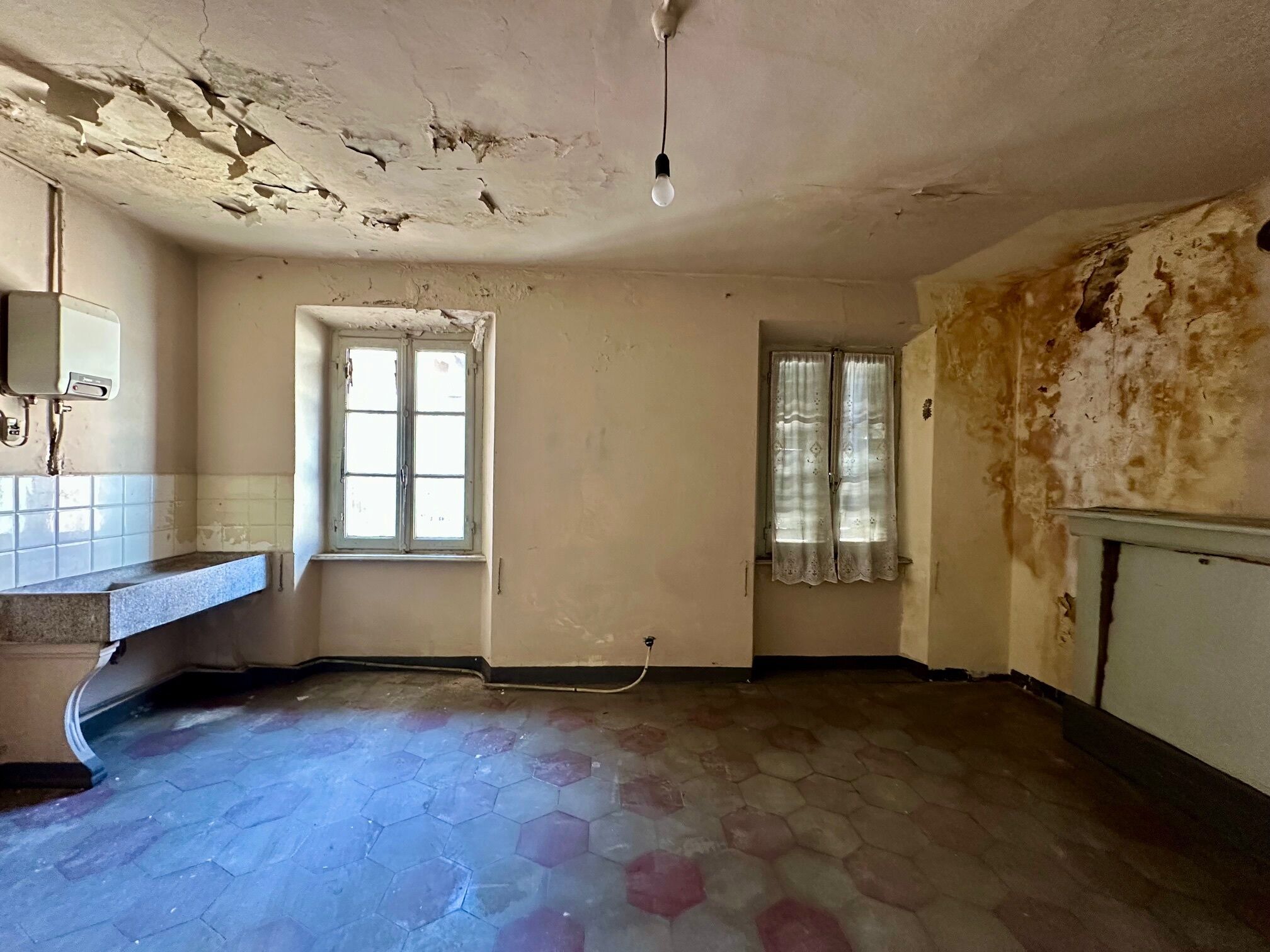 Die Liegenschaft, an zentraler und ruhiger Lage, umfasst mehrere zusammenhängende Gebäude mit Innenhof, typisch für die Bauperiode Anfang 19. Jahrhundert, aufgeteilt auf 3 bis 4 gemischt genutzte Etagen. Im Erdgeschoss befinden sich Gewerbeflächen, darüber mehrere Wohneinheiten, die jedoch nur teilweise bewohnbar sind. Eigene Parkplätze sind nicht vorhanden, der Zugang für Fahrzeuge ist eingeschränkt.