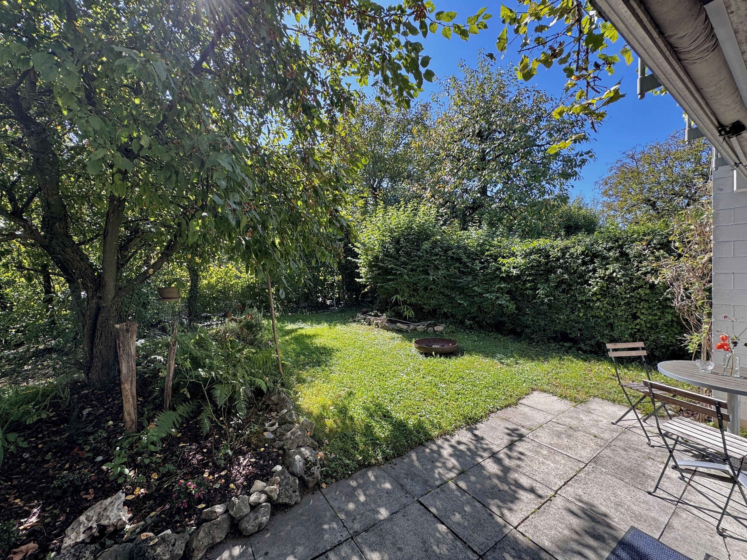 This spacious corner house with building rights offers plenty of space, modern furnishings and a child-friendly environment. The spacious garden and communal outdoor area with playground offer ideal conditions for families. The house offers a wonderful view of the countryside and the garden provides peace and relaxation. In addition, the photovoltaic system and the Swedish stove help to save costs and protect the environment.